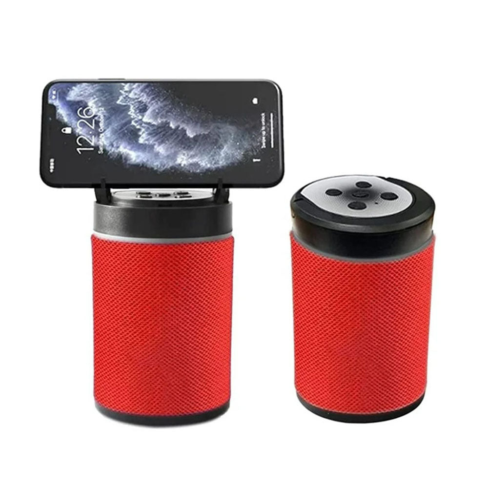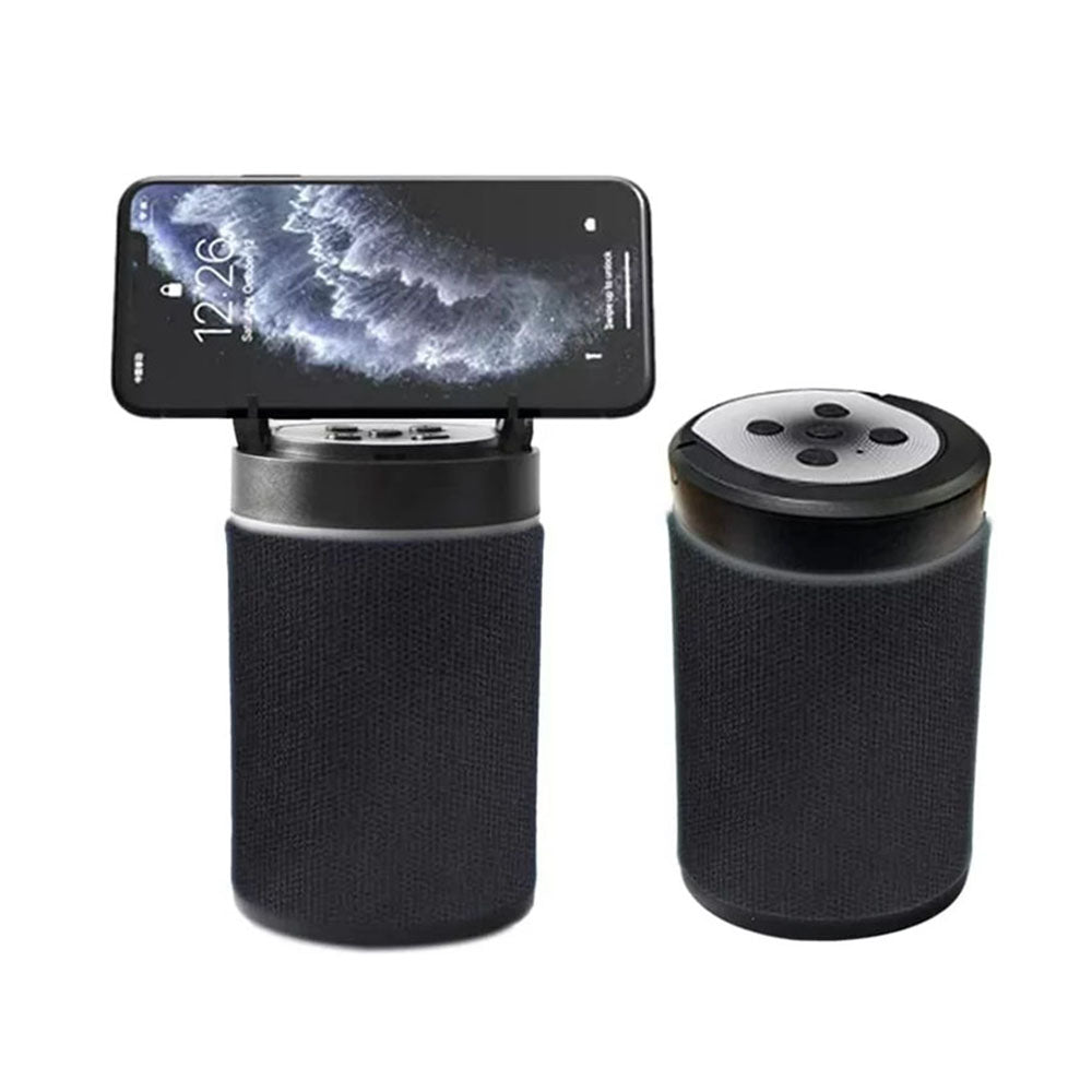 Además de su increíble diseño y textura, cuenta con diferentes entradas para conectar con varios dispositivos, con soporte innovador esta bocina fue diseñada para que puedas colocar tu celular mientras escuchas música.